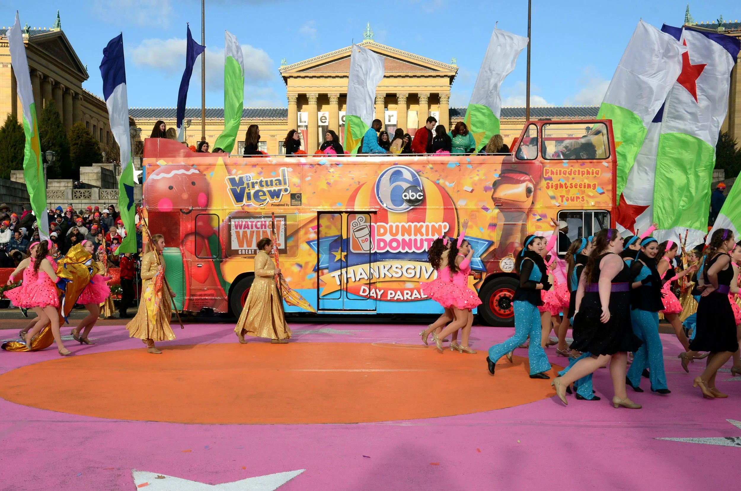 Philadelphia’s 6abc Thanksgiving Day Parade is the longest-running Turkey Day parade in the country. Take that, Macy's! Fighting words aside, my team and I had the opportunity to work with 6abc, a longtime Interstate client and the parade’s primary sponsor and official telecaster, to supersize their OOH promotion of the parade with a unique activation. Knowing we had exceptional event access, we wanted to get as close to the action as possible - maybe even IN the action? And that’s exactly what happened when we got the green light to incorporate a double decker bus into the opening dance sequence of the parade. We wrapped that big, beautiful bus with branded copy, and off it went to join its dancing counterparts. Thanks to our friends at 6abc, the bus was featured on Good Morning America (!) before rolling onto center stage for a spectacular parade kick-off. Augmenting the experience (pun intended, keep reading), the wrap included a Virtual View graphic, which live spectators and TV viewers could scan to enjoy an animated 6abc mascot. The activation was a huge success and was replicated for several years to follow.